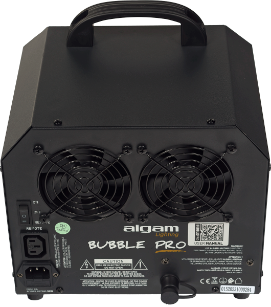 The Algam Lighting Bubble Pro is a true essential for creating the perfect atmosphere in the blink of an eye at numerous events, from birthdays and parties to fairs and corporate events. Very accessible and easy to use, the Bubble Pro only requires the addition of a soap-based bubble fluid to generate an impressive volume of bubbles for extended periods. Fill the 75 cl tank at the front, plug it in, switch it on, and let the magic begin!