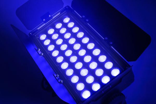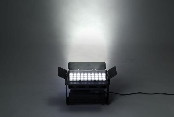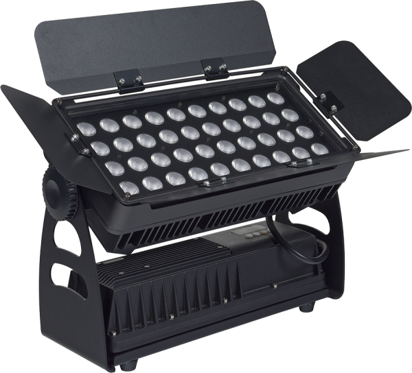 The FL600V-IP is the ideal outdoor projector for effectively illuminating the facades of any building or monument, as well as for any outdoor event. Its 40 x 15W RGBW LEDs guarantee an intense luminous flux and a precise and accurate color palette, which can be effectively directed thanks to its tilting bracket and the 4 barn doors that allow for precise control of the beam angle. IP65 rated and DMX controllable, the FL600V-IP is designed to withstand water jets and dust ingress.