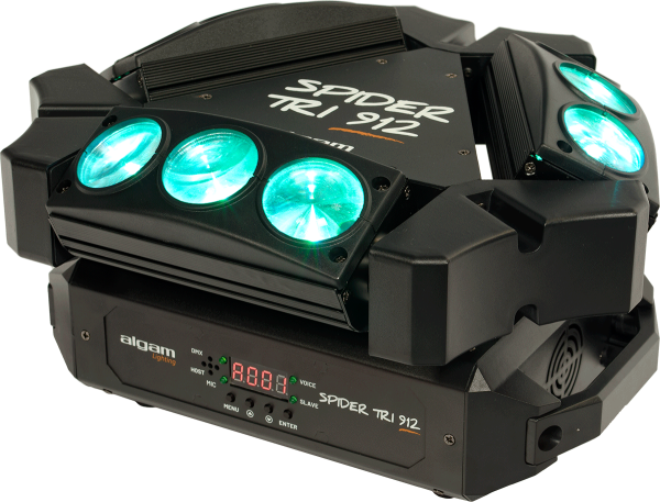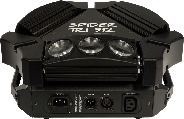 Designed for use by both novices and professionals, the Spider Tri 912 offers numerous operating modes to meet all your needs. To set the mood in just a few moments without tedious adjustments, simply use the Automatic or Music Detection mode, and the Spider Tri 912 will set the dancefloor ablaze! For professionals looking to create a more advanced light show, the Spider Tri 912 features a DMX mode that can operate on 16, 24, or 48 channels to control each LED independently. The Spider Tri 912's flexible installation options allow you to install it on the floor, or hang it upside down for an impressive sweeping effect throughout the room.