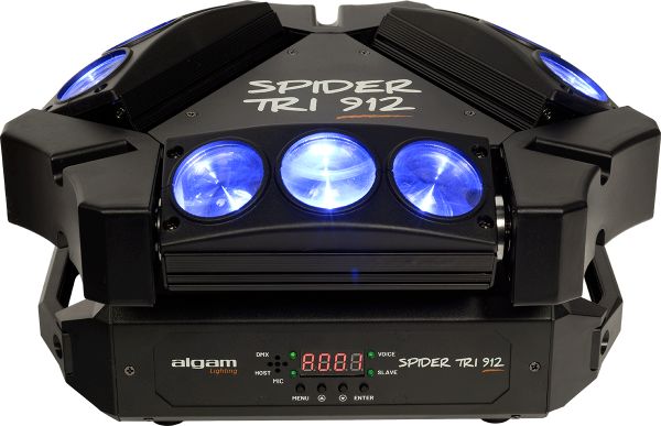 A must-have light show for any nightclub, the Spider Tri 912 is the essential system for creating a dance-like, festive atmosphere in just a few moments! Its three pivoting mini-bars, each equipped with three 12W RGBW LEDs, are cleverly positioned in a triangle on a lightning-fast 360° rotating frame, allowing you to create impressive lighting effects with beams of every color sweeping across the dance floor.