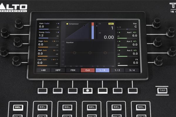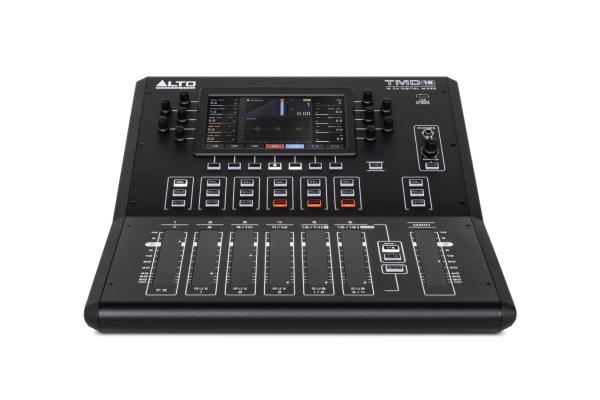 The TMD16, from Alto Professional, is a compact 16-channel digital mixing console that combines professional performance, advanced ergonomics, and an affordable price. Designed for musicians, technicians, rehearsal spaces, studios, and performance venues, it offers a smooth and precise mixing experience thanks to its clear interface, 100mm capacitive faders, and 7" color screen surrounded by numerous encoders and control buttons.