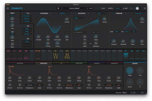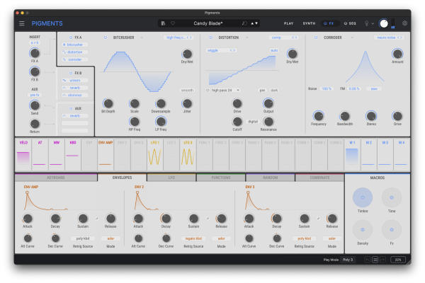 Pigments 7 introduces a redesigned Play window with dynamic, real-time visual feedback. Waveforms, envelopes, filters, and modulations are animated, making it easy to analyze a patch, understand the sound, and quickly adjust parameters while staying focused on the creative process.
