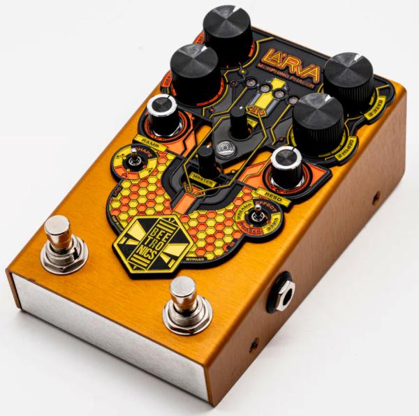Compatible with guitar, bass and synths, BEETRONICS LARVA Morphing Phaser is a 6-stage analog phaser, vibee and preamp delivering unmatched warmth, paired with a simple and intuitive interface packed with modern features like tap tempo and dual morphing presets.