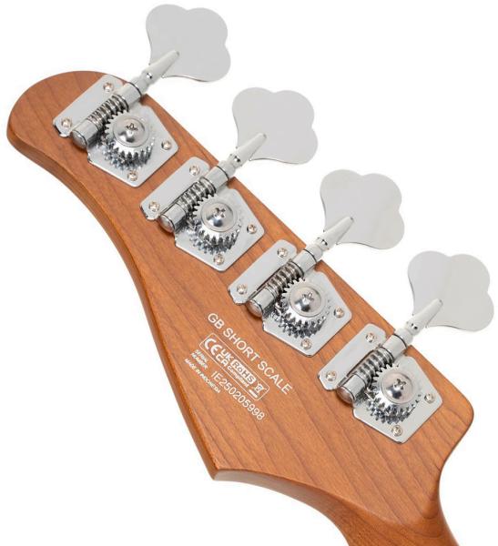 - Solid body electric bass, short scale, active electronics
