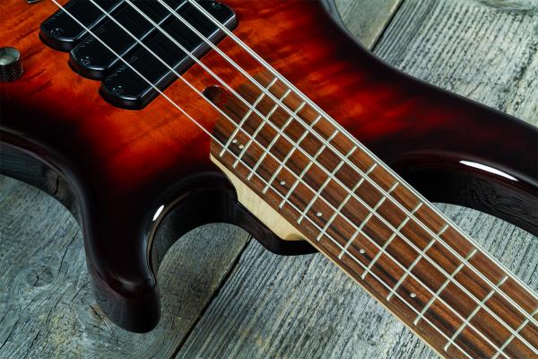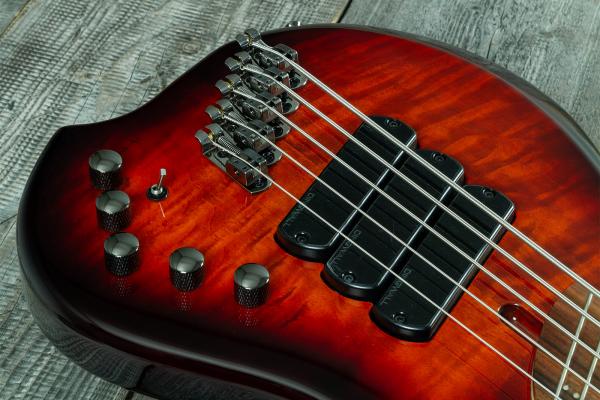 - 5-string solid body electric bass with active/passive electronics