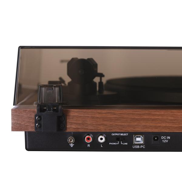 Designed for everyday use, it is both intuitive and quick to set up. Its elegant matte wood design blends seamlessly into any interior, adding a touch of both modern and vintage style. It comes with a dust cover, effectively protecting your equipment when not in use.
