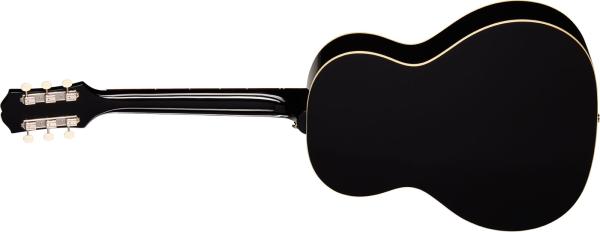 spruce top for a responsive, balanced tone with excellent dynamic range that sounds even better as it ages. The mahogany neck is attached to the body with a glued-in tapered dovetail neck-to-body joint and features a comfortable Rounded C profile. The neck is capped with a rosewood fretboard equipped with 19 standard frets and adorned with simple pearloid dot inlays. The other ends of the strings are routed over a compensated plastic saddle and are anchored to the rectangular rosewood