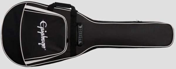 It is equipped with a LockTone™ Tune-O-Matic™ bridge and a LockTone Stop Bar tailpiece for outstanding intonation and sustain, and Posi-Lok™ strap buttons keep your strap securely attached without extra hardware. The glued-in mahogany neck features a long neck tenon, an ultra-comfortable, fast-playing Modern C profile, and is topped with a bound ebony fretboard with 22 stainless steel medium jumbo frets and elegant Super 400-style pearloid split block inlays. The fretboard also features a 10”-14” compound radius, making chording and string bends equally effortless. The bound Kalamazoo headstock is outfitted with locking Grover® Rotomatic® tuners with kidney buttons, a Graph Tech® nut, and features the Epiphone logo and the Custom split diamond inlay in mother-of-pearl.