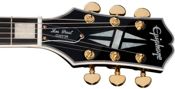 frets, gold hardware, including a gold Epiphone LockTone™ Tune-O-Matic™ bridge and LockTone Stop Bar tailpiece, a pair of Epiphone’s Probucker™ Custom humbucker™ pickups, which are based on Gibson Custom’s Custombucker humbucking pickups, and a larger Custom split-diamond inlay on the headstock.