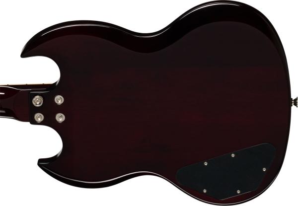 The SG Tribute Plus features a classic Gibson SG-shaped body made from mahogany. It has the iconic beveled mahogany SG body with a flame maple veneer top that looks fantastic. The bolt-on mahogany neck has a fast and easy playing 60s SlimTaper™ Rounded C profile that makes practice sessions and jamming a joy, and a tapered heel joint for improved upper fret access. The headstock features the popular 60s Kalamazoo headstock shape, which is outfitted with quality die-cast tuning machines, and the bound laurel fretboard is outfitted with 22 medium jumbo frets and adorned with pearloid trapezoid inlays.