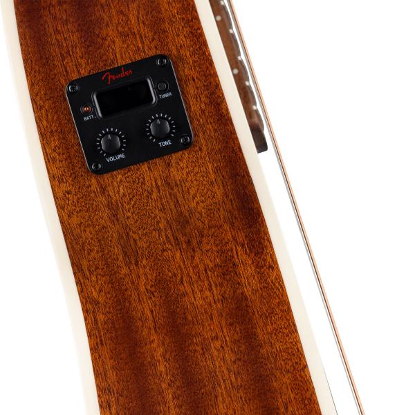 The onboard Fender electronics provide high-quality output for live amplification, recording and effects, as well as a convenient onboard digital tuner. Other noteworthy details include an oiled walnut fingerboard and bridge, sealed gear tuning machines for smooth and accurate tuning action, and a sleek long-lasting gloss finish.