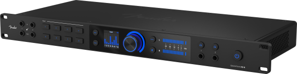 The Quantum HD8 is a sound card from Fender. Fender's Quantum HD 8 is equipped with eight MAX-HD mic preamps, offering +75 dB of gain. This improvement translates into sharper, more detailed recording of vocals and instruments. These preamps ensure minimal noise and exceptional clarity, crucial for capturing richly nuanced performances. Thanks to its advanced design, the Quantum HD 8 promotes sonic purity, making it an outstanding feature for serious studio artists. This audio interface takes guitar and bass recording to the next level with inputs developed in partnership with top Fender engineers. This collaboration has resulted in inputs that preserve the natural tone and resonance of your instrument, greatly enhancing recordings and live performances. Whether you're capturing a bass groove or a guitar riff, the quality is incomparable. Leave manual adjustments behind and focus on your performance with the Quantum HD 8's Auto Gain function. At the touch of a button, the interface automatically calculates and sets the optimum gain for your microphones and instruments. This revolutionary function simplifies the task for beginners and experienced users alike, ensuring consistent, high-quality recordings without the slightest hassle. The Quantum HD 8's preamplifier outputs open up a vast realm of sonic exploration. Route audio from your recording software directly to your guitar or bass amp, then re-record to test various amp settings, pedal effects and microphone positions. This feature allows musicians to fine-tune their sound and discover unique tonal combinations, making the Quantum HD 8 an invaluable tool for sound creation.