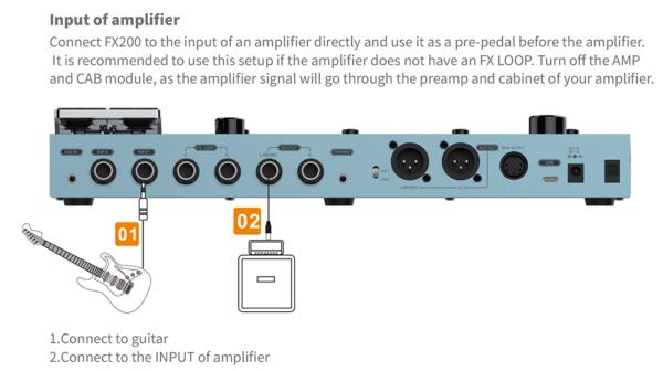 The FX200 is almost recognizable compared to its younger brother the FX100. Users will instantly notice the addition of two more footswitches for easier preset bank switching and effects control, as well as an all-new pedal design with premium grip and upgraded hinge functionality. The I/O has been drastically expanded to support auxiliary in, expression pedal, stereo FX Loop, stereo out, headphones out, XLR out, 5 pin MIDI in/out, USB-C for PC connection, and a power switch is also included for convenience. The expanded I/O is aimed for covering guitarists in all situations, with or without an amp, on stage, in the studio, or on the road.