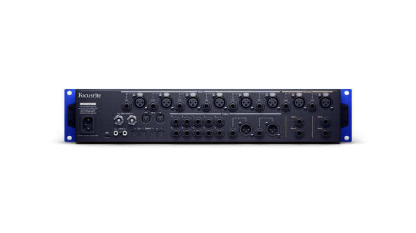 The ISA C8X is also designed for permanent rack and in-rack installations. It offers line inputs that allow you to permanently connect external equipment, eliminating the need for constant patch reconfiguration. For immersive formats, the 12 balanced line outputs support projects ranging from mono to 7.1.4, with up to three groups of monitor speakers that can be switched from the front panel or using Focusrite Control 2 software. The entire system is also expandable, with 16 additional ADAT channels and two more S/PDIF channels for digital equipment. MIDI and Word Clock I/O are also included.