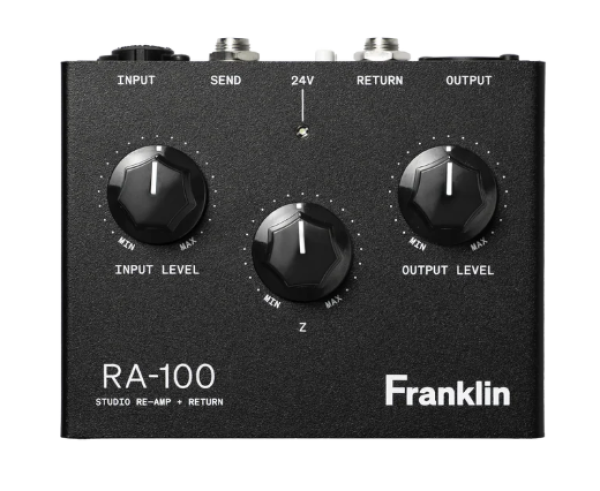 The Franklin Audio RA-100 is an all-in-one re-amp and return interface designed to easily integrate external effects chains, including pedals, into your audio production workflow. It simplifies the use of your pedalboards, effects processors, or amplifiers with a DAW or mixing console, handling both send and return signals with transformer-balanced inputs/outputs for a wide dynamic range and high-quality sound.