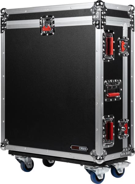 Gator's iconic red recessed latches and rubber-coated spring-loaded handles offer secure closure and a comfortable grip. The integrated castor tray, equipped with two wheels with brakes, makes transport smooth, stable and effortless.