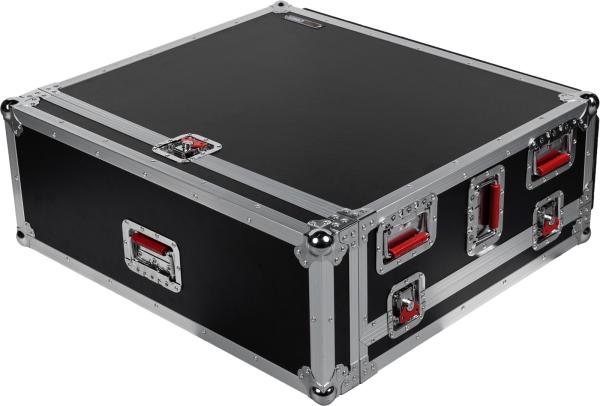 Gator's iconic red recessed latches and rubber-coated spring-loaded handles ensure secure closure and a comfortable grip. The integrated wheeled tray, equipped with two wheels with brakes, enables smooth, stable and effortless transport, even over long distances.
