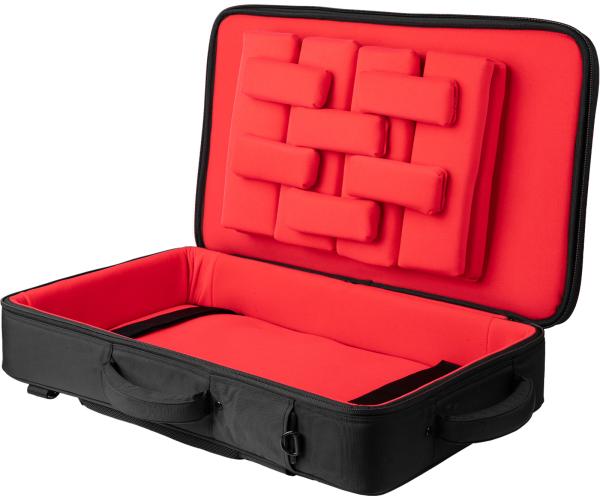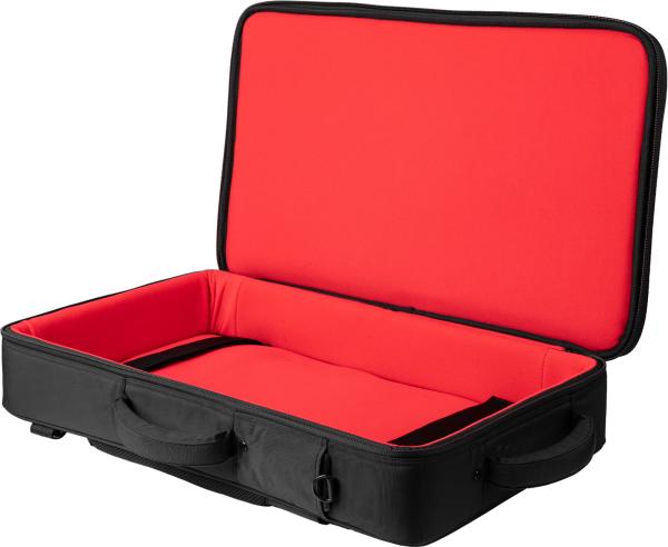 The Gator Cases ICON Series G-ICONDJ-MD-BP bag is designed for medium-sized DJ controllers, offering rugged protection, smart organization and stylish design for DJs on the move. Its semi-rigid, multi-layer construction combines a weather-resistant black 1000D nylon exterior with a soft red knit interior, ensuring optimum protection for your equipment.