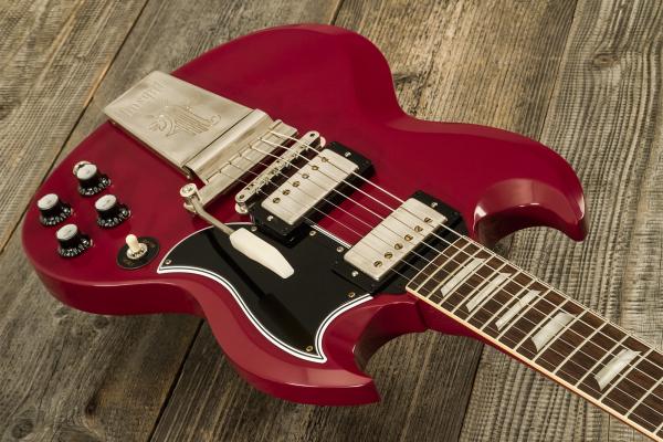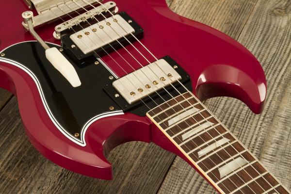 Along with the Maestro Vibrola and chunky neck profile, it has all the hyper-accurate vintage specs one could possibly want -- original construction methods, a real red aniline dye finish, chemically-recreated plastics, replica electronics, and more. The result is perhaps the best looking, feeling and sounding SG Reissue yet.
