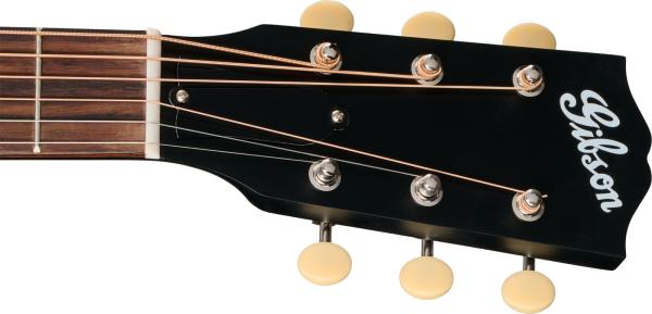 Its mahogany neck features a comfortable SlimTaper™ 12-Fret profile and uses a compound dovetail joint secured with hot hide glue, a traditional build approach used throughout Gibson’s acoustic range. The rosewood fingerboard carries 19 frets and understated mother-of-pearl dot inlays.