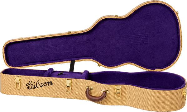 The headstock showcases open-back Golden Age strap tuners with cream buttons and an early-1900s-style Gibson script logo decal for an authentic vintage look. Complementing this are period-inspired touches such as the sloped-rectangle closed-slot rosewood bridge. The guitar is completed with a bone nut and saddle, TUSQ® bridge pins, a classic L-00-style pickguard, and a hand-applied satin nitrocellulose lacquer finish.