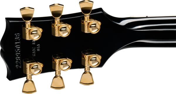 The mahogany neck has an ebony fretboard with a compound radius and Super Split Block mother-of-pearl inlays. The neck has a Modern Contoured Heel for exceptional upper fret access, and the headstock is adorned with a striking mother-of-pearl inlay inspired by a design from the 1940s that was discovered in the Gibson archives.