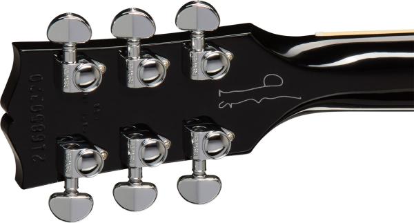 The electronics are also distinctive, featuring unique chrome-covered Gibson P-90 Soapbar pickups that are hand-wired to individual volume and tone controls, as well as a three-way pickup selector. The control knobs are black Top Hats with silver reflectors and dial pointers.