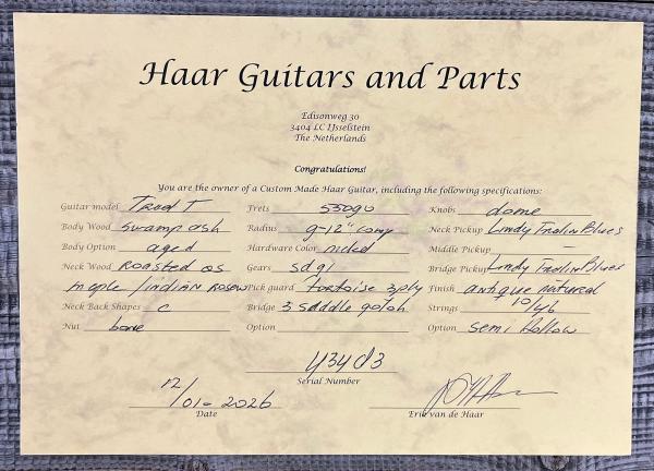 Haar guitars are crafted in Holland with drastically sourced woods (not from Allparts or Warmoth parts !) and components (Kloppmann, Lindy Fralin, Bare Knuckle pickups).