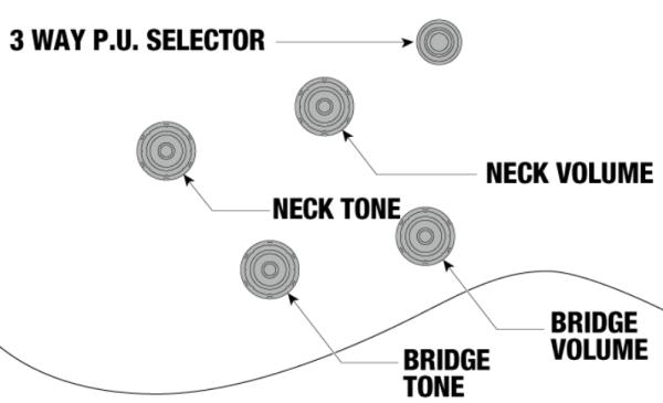 - Volume & tone for each pickup