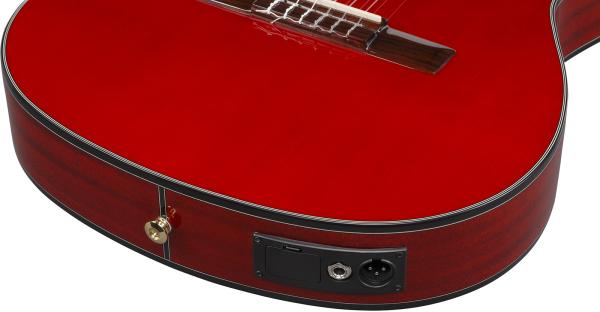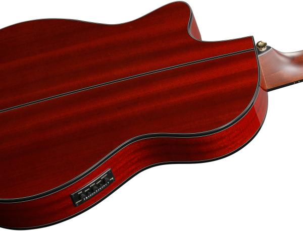 IBANEZ Classical Series GA35TCE SRR acoustic/electric guitar is a thinline 4/4 model (70 mm body thickness) with cutaway featuring layered Spruce top, layered Sapele back/sides, Nyatoh neck, Rosewood fretboard and Ibanez AEQ210T preamp w/Onboard tuner.