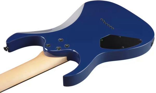 The IBANEZ GIO GRG7221QA TBB is a 7-string / standard scale (25,5") solid body electric guitar, featuring Poplar body, Maple set-neck, 24 frets Purpleheart fingerboard, passive Ibanez pickups (ceramic magnets) and fixed bridge.