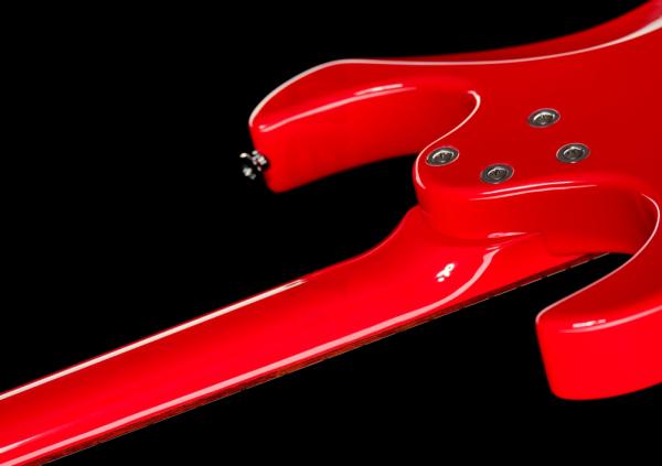 Fingerboard is made of Brazilian Cherry / Jatoba. It is a tonewood very similar to Pau Ferro. Its warm tone is tempered by a snappy attack. In between Rosewood and Maple.