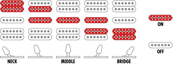 - Dimarzio Air Norton / True Velvet / The Tone Zone HSH pickups (passive, alnico magnets)