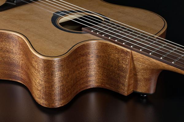 The very attractive LAG Hyvibe H2 HV10-N-ACE is an Auditorium classical acoustic/electric guitar featuring solid Cedar top, layered Khaya back/sides/neck and Brown Brankowood fingerboard/bridge. It benefits from excellent craftmanship, and provides warm, rich and dynamic sounds.