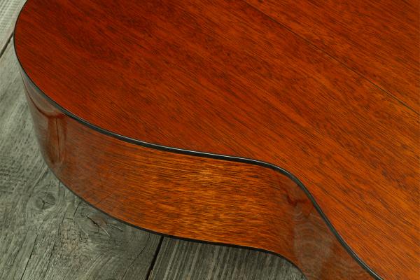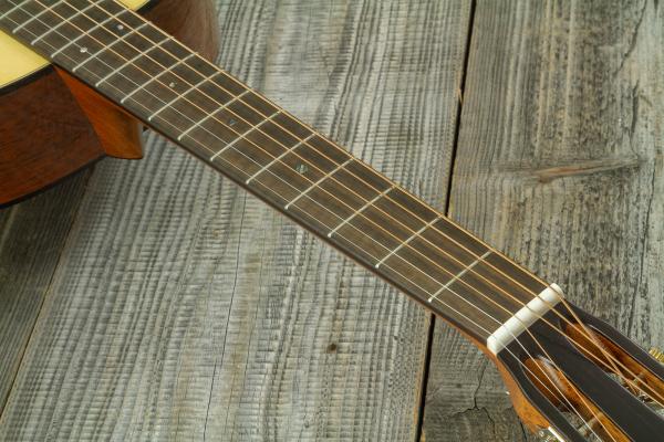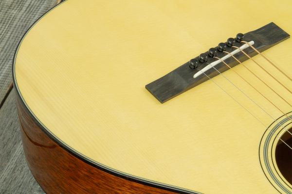 It features Solid Adirondack Spruce top and bracing, Mahogany back/sides, genuine solid Mahogany neck with Modified Low Oval and High Performance Taper profile, Ebony fretboard.