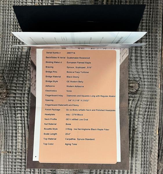 It features Solid premium Carpathian Spruce top, solid guatemalan Rosewood back/sides, genuine solid Mahogany neck with Modified Low Oval and High Performance Taper profile and Ebony fretboard.