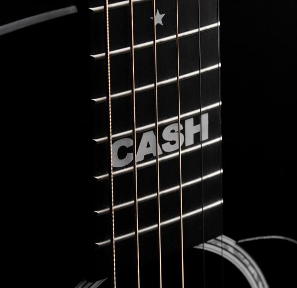 For 2019, the DX Johnny Cash is a nod to the history between Cash and Martin Guitar. Designed in collaboration with John Carter Cash and the Cash Foundation management team, the guitar features a classic Dreadnought body shape constructed with Jett black high-pressure laminate (HPL) top, back and sides. Like the earlier commemorative edition, this instrument includes a custom fingerboard inlaid with stars and the “CASH” logo. Johnny Cash’s signature appears on the rosette and label.