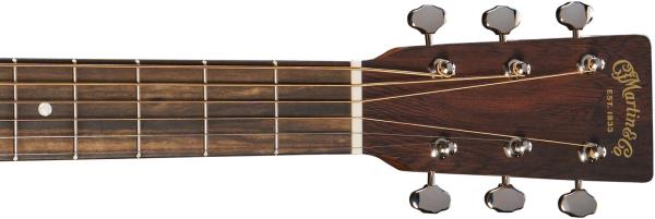 The Dreadnought body produces bold, projective tone with strong bass, while scalloped X-bracing adds clarity and responsiveness. A Performing Artist neck with high-performance taper ensures smooth, modern playability across the fingerboard. Vintage-inspired touches like old- style dot inlays, a multi-stripe rosette, and nickel open gear tuners with butterbean knobs nod to Martin’s Style 18 roots.