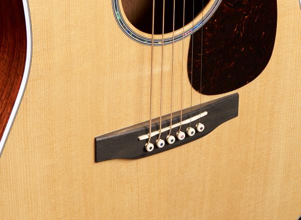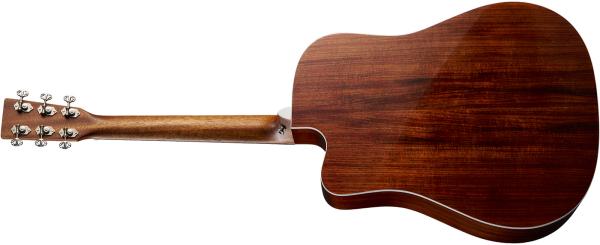 The MARTIN Road Series DC-13E Modern acoustic/electric guitar blends contemporary style with stage-ready performance. Its gloss Dreadnought cutaway body combines a solid spruce top with koa fine veneer back and sides for clear, balanced tone with shimmering highs and long, even sustain. Scalloped X-bracing boosts volume and responsiveness, while the cutaway gives full access to the upper frets.