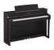 Black piano bench with faux leather seat, seat dimensions: 450 x 300 mm, maximum weight capacity: 150 kg. The metal structure provides a robust construction.