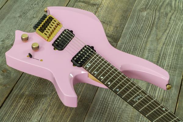 Featuring chambered Swamp Ash body, bolt-on Maple neck and 24 stainless steel frets Ebony fingerboard, the ORMSBY Goliath Headless GTR 7 String Run 14C (Shell Pink) solid body electric guitar is a core production version of the Goliath made in Ormsby Australian custom shop. It made its official debut at winter NAMM 2017 with an astounding reception by various players from around the world. The Goliath Headless GTR represents the latest in ergonomic multiscale guitars.