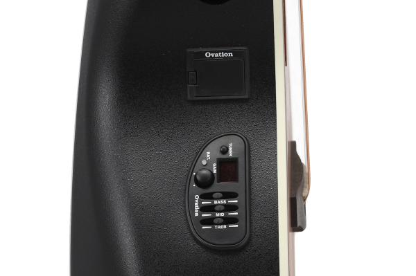 The gold-finished, die-cast Ovation Pro Series tuning machines ensure exemplary tuning stability. On the electronics side, the Ovation CP-100 Slimline pickup, coupled with the OP-4CT preamp with integrated tuner, delivers natural, faithful amplification, suitable for stage and studio.