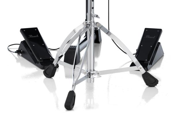 The Pearl eRoadshow is also distinguished by its silent pedals, designed to deliver a smooth, natural response. The kit includes a bass drum pedal and a hi-hat pedal, both responsive and suited to dynamic playing. A rare advantage in this category is that the two pedals can be used together to play as a double pedal, enabling drummers to learn double bass drum techniques without additional investment. This feature considerably expands playing possibilities and makes the kit even more versatile.