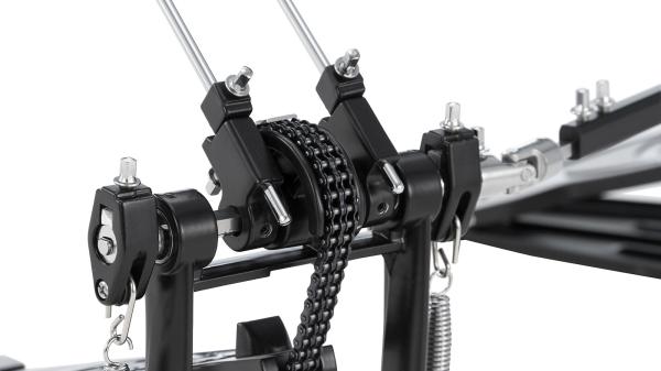 The Pearl P-532 double pedal is designed to deliver exceptional performance for drummers of all levels. Featuring a double chain drive, it ensures smooth action and optimum responsiveness. Precision ball bearings and double-sided bats offer a variety of sounds to suit different playing styles. The pedal also features an adjustable Click-Lock spring system for customized tension and a stabilizer plate for improved grip.