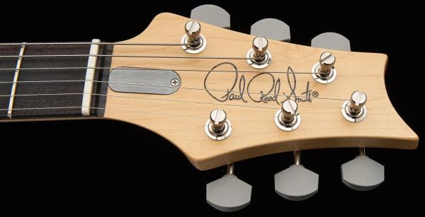 The headstock shape is based on PRS’s trademark design, but inverted to both accommodate Mayer’s playing style and also to keep a consistent length of string behind the nut, which makes staying in tune easier. The tuners are a traditional vintage-style, closed-back tuner, but with PRS’s locking design.