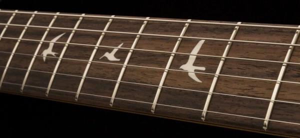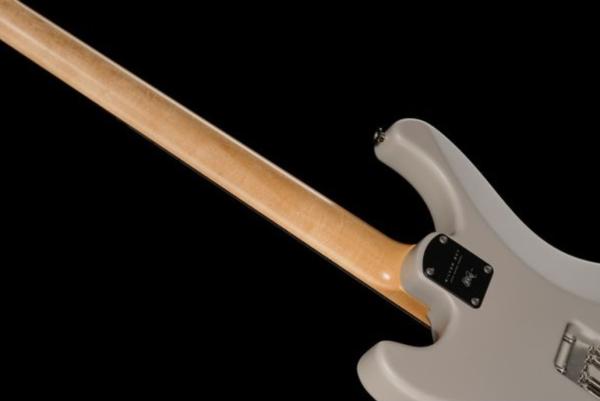 The headstock shape is based on PRS’s trademark design, but inverted to both accommodate Mayer’s playing style and also to keep a consistent length of string behind the nut, which makes staying in tune easier. The tuners are a traditional vintage-style, closed-back tuner, but with PRS’s locking design.