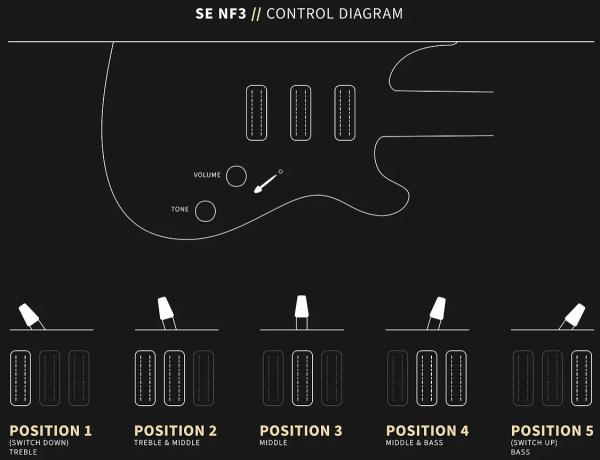 Supporting these pickups is a poplar body, 22-fret bolt-on maple neck, and a rosewood or Maple fretboard. The SE NF3 is a versatile workhorse guitar that is fun to play and hard to put down.