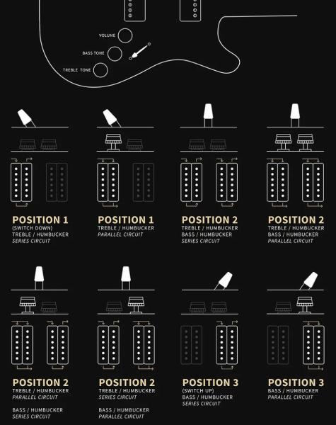 The Fiore-H humbuckers have enough power and punch for high-gain lead tones but with a smooth top end that allows the pickup to be played clean, even with the volume knob wide open. By pairing these pickups with a master volume, two push/pull tone knobs, and 3-way blade switch, the Fiore HH brings exciting voicing options to players. Each tone control acts as an individual series/parallel selector for each pickup. When in series, you get the full humbucker sound - warm full lows and mids and an articulate top end. When in parallel, the pickups take on more of a single coil sparkle with a slightly scooped feel and more brilliance. In all, players can explore eight tonal combinations.