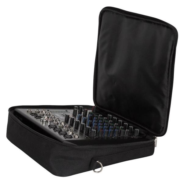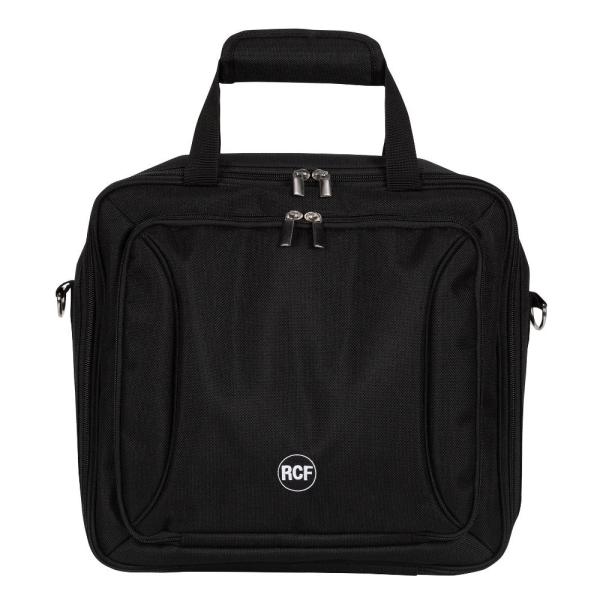 Padded duffle bag for mixers RCF F 10XR with handle and shoulder carrying strap. Wide front pocket with separated compartment for tablet computers or other accessories.