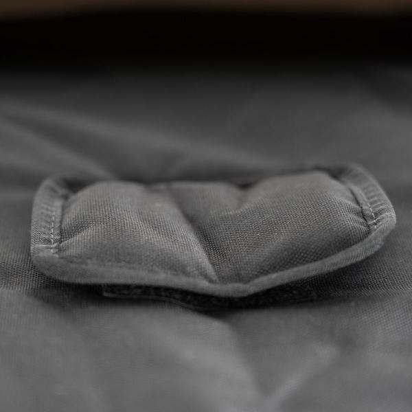 It features a tough polyester outer fabric, foam rubber padding and Velcro-reinforced zippers.